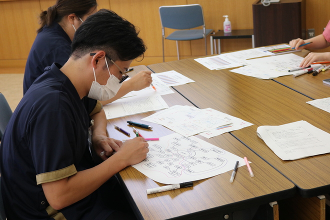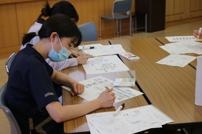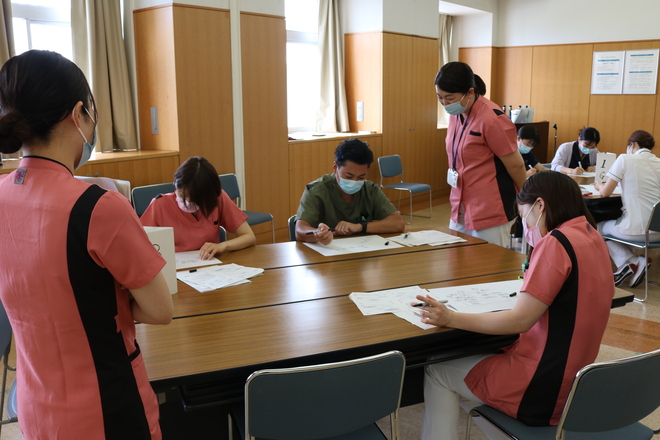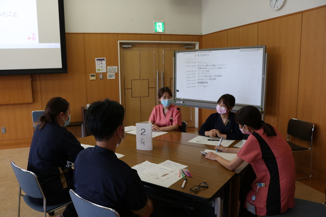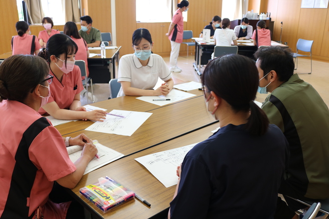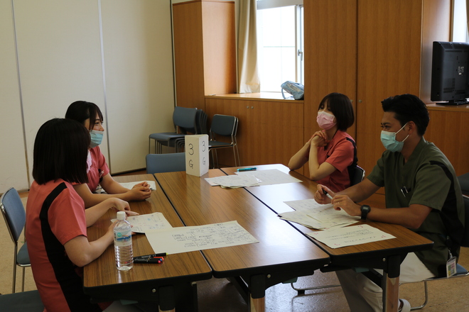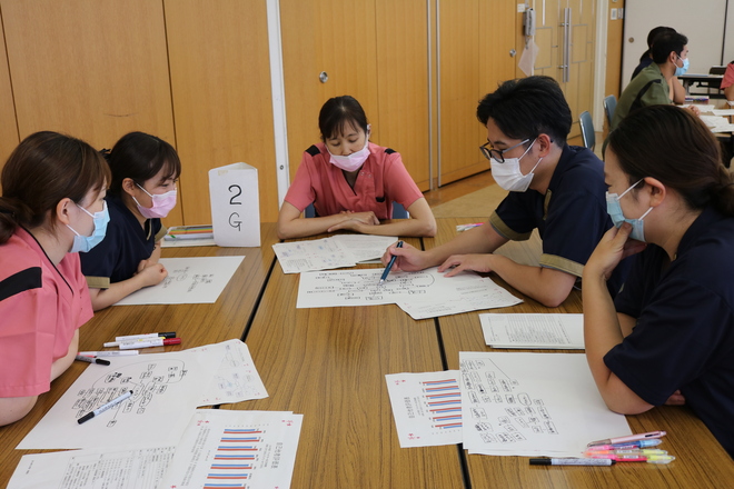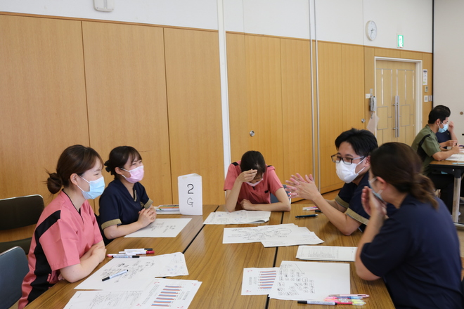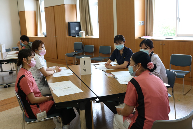 [画像]指導者研修(170.1KB)[画像]指導者研修(163.2KB)[画像]指導者研修(150.4KB)同じプリセプターとして、プリセプティとの関わり方の違いや気づきが多くあり、個々の話を聞いて共感する部分や違ったアプローチをしてみたら伝わりやすいかもしれないといったアドバイスもありました。