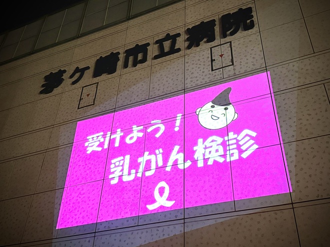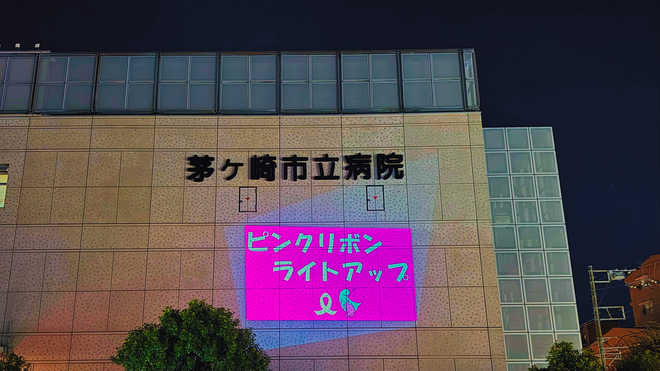 [画像]壁面ライトアップ風景(370.7KB)[画像]壁面ライトアップ風景2(127.5KB)10月の乳がん月間に合わせて、県内の様々な建物やランドマークをピンク色にライトアップし、乳がんの早期発見、早期治療の大切さを啓発する活動、ピンクリボンライトアップにも参加しました。