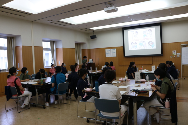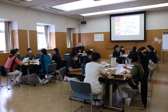 11月6日(木曜日)に新人看護職員を対象に、今回の研修目的でもある「多重課題の状況下で、優先順位を判断できる」を目標に実践しました。