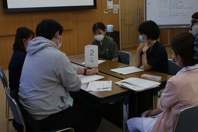 ナラティブに関しての講義後に、事前レポート課題であった「過去の経験の中から思い出す一番忘れない患者との場面」を各グループごとで語り合いました。
