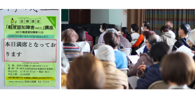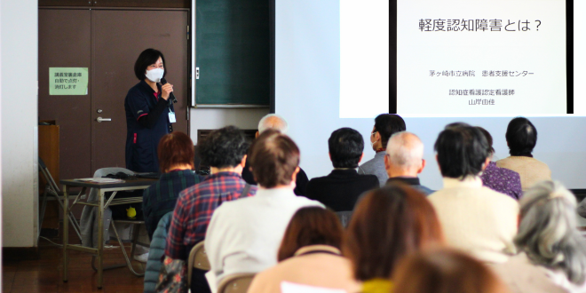 1月16日、茅ヶ崎市の松林公民館にて「軽度認知障害(MCI)」をテーマにした出張講座を開催しました。今回の講師は当院の山岸看護師。山岸看護師は、認知症看護認定看護師として患者支援センターにて、日々患者さんやそのご家族の相談業務に携わる専門看護師です。