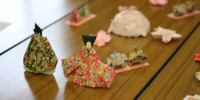 [画像]ボランティアさん飾りつけ(347.3KB)会場の講堂や通路には、院内ボランティアの方々が作ってくださった季節の作品が飾りつけられていて、とても和やかな雰囲気です。今回はひな祭りが近いということもあり、きれいな千代紙で細かく折られた雛飾りがたくさん。お土産にかわいいオーナメントももらいました。いつも素敵な装飾をありがとうございます。