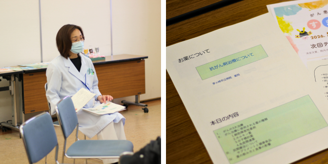 がんの3大治療法である手術、放射線、そして薬物治療。2月25日に開催された「すまいる」では、当院の薬剤師が「抗がん剤治療について」をテーマに、がん治療に使用される薬の種類、薬の飲み方のポイント、民間療法の注意点などについてお話しました。