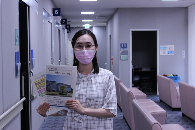 人間ドックのパンフレットの作成や検査項目の見直しに関わり、市民の皆さんの健康増進に向けた「予防医療」の分野でも事務としてできることを少しずつ形にしているところです。
