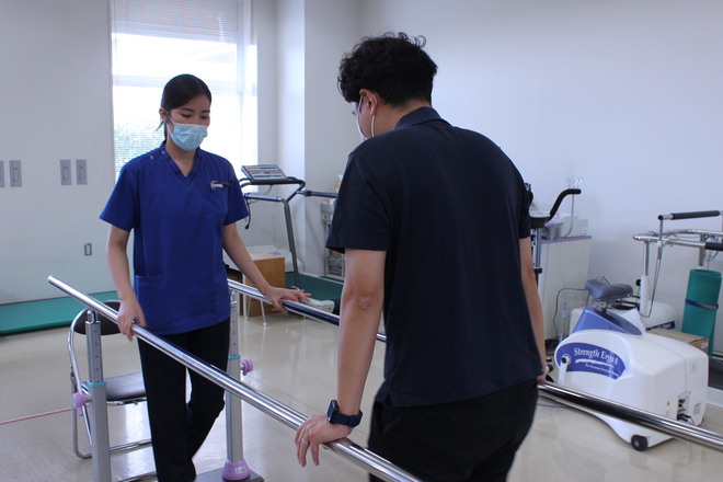 急性期のリハビリテーションを担当しています。主に術後や内科系疾患の方の運動機能回復を目指し、離床や起立・歩行練習を実施しています。