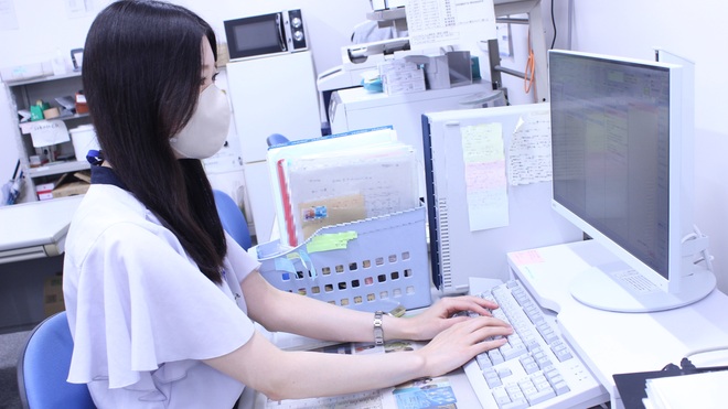 現在は、入院患者さんのコーディングチェックやがん登録、カルテ開示、文書作成システムの管理等を行っています。