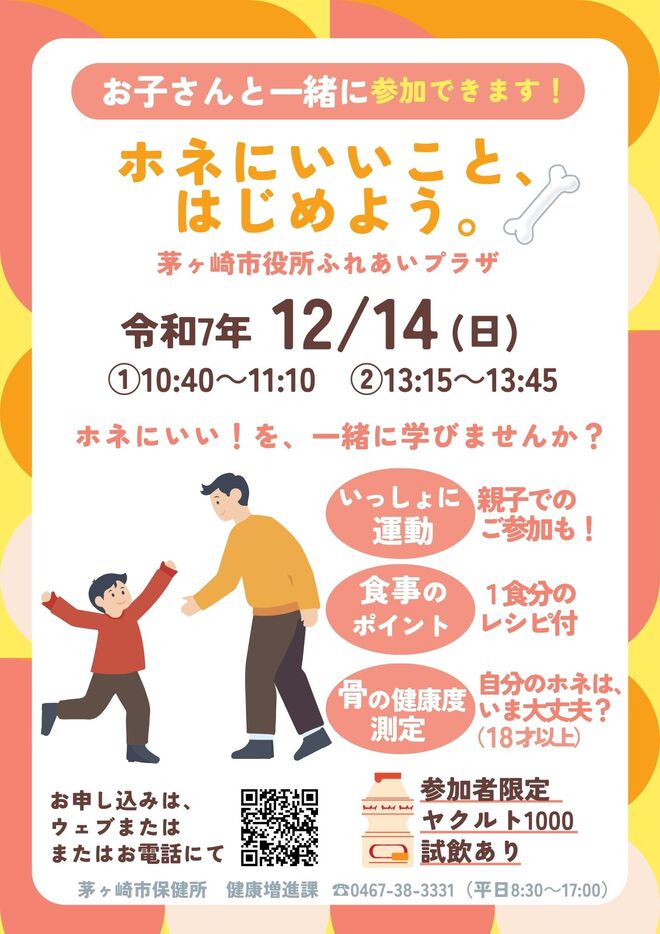 この教室では、骨の健康を保つためのポイントをお話しします。お子様と一緒にご参加も大歓迎!