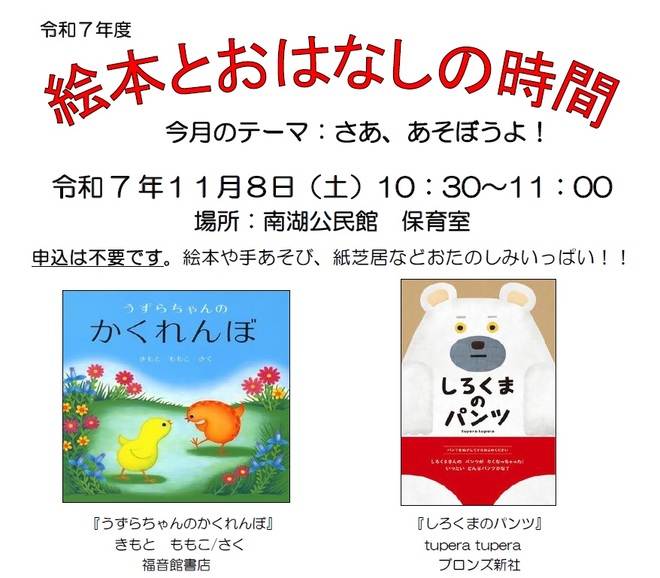 絵本、パネルシアター、手遊びなどお楽しみがたくさんあります。
