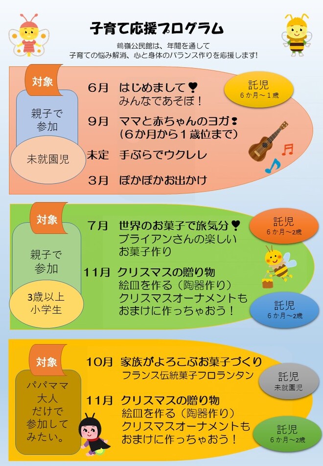 [画像]子育て応援プログラム4[家族が喜ぶお菓子作り」(鶴嶺公民館)(140.4KB) [画像]子育て応援プログラム 年間スケジュール(157.8KB)鶴嶺公民館