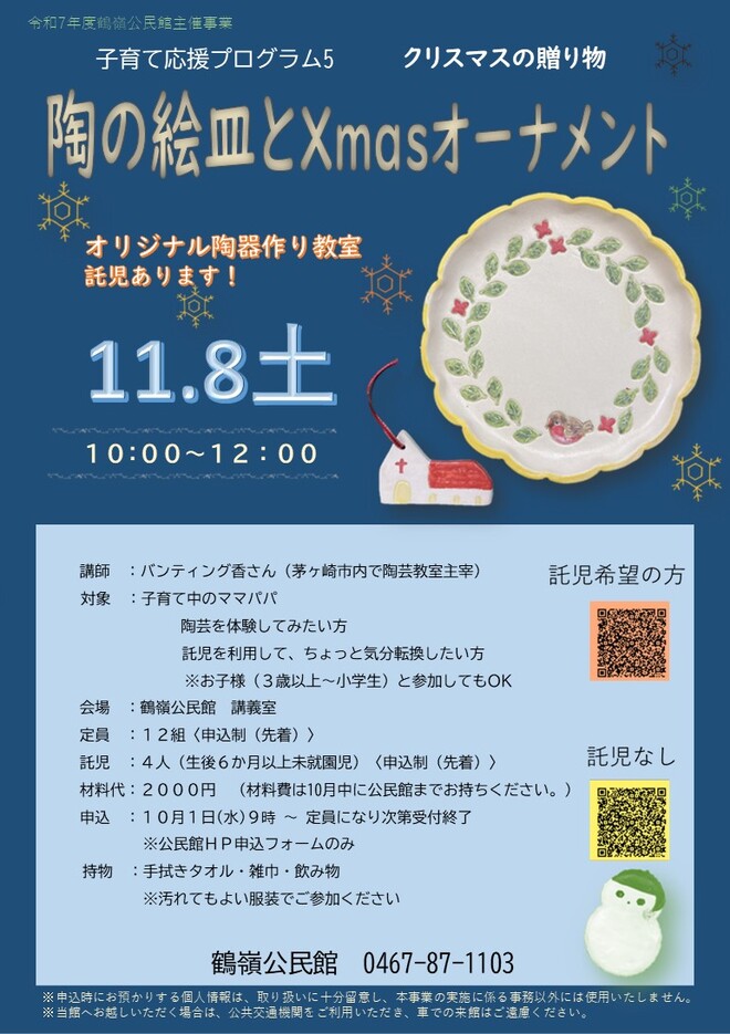 材料費は10月中に公民館までお持ちください。