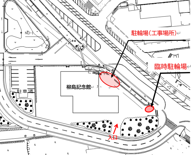 工事期間中は、臨時駐輪場のご利用をお願いします。